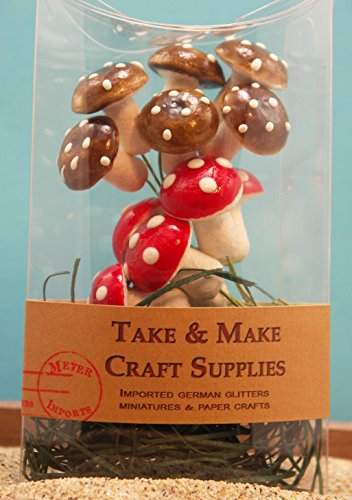 Studio : Meyer Imports Publisher : Meyer Imports Binding : Office Product Product Description Set of 10 Mixed Color Spun Cotton Mushrooms. Welcome to the world of fabulous spun cotton mushrooms! Packaged conveniently in Take and Make packages, these cotton mushrooms are ready for any craft project! These Big Red and Brown Mushrooms measure approx 3/4 inch across and come on floral wires. Use moss with any glue or adhesive to add to greeting cards, scrapbook projects, dioramas or... These are Brand New, Vintage Old Stock. They are coming right out of a shipment that has been in the back of a warehouse for over 20 years. These Mushrooms, come in a set of 10 pieces,(5 of each) or larger quantities available 0