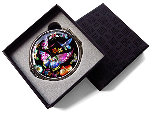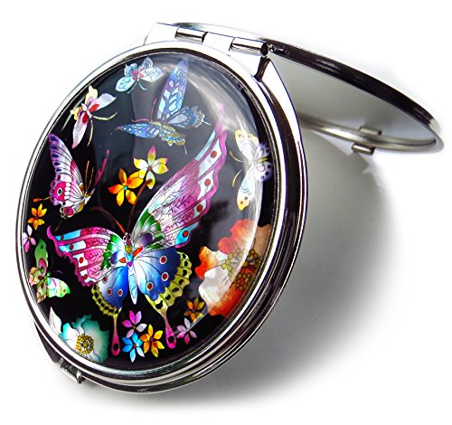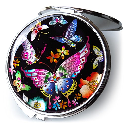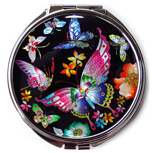 Korean Makeup Compact Mirror Mother of Pearl Metal Butterflies Black #3