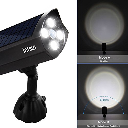 Intsun Ultra Bright USB Solar Powered 4 LED Motion Sensor Lights, Dummy Camera Outdoor Spotligh, 800Lumens Max, Wireless Security Light for Front Door,Parks,Garden,Factory,Street Road