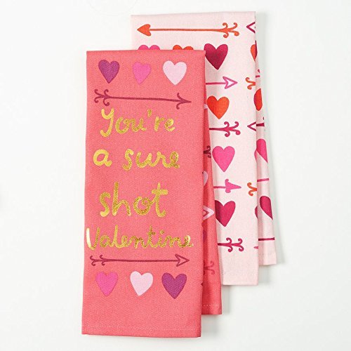 "You're a sure shot Valentine" Flour Sack Kitchen Dish Towel 2 Pack with Gold Foil Lettering
