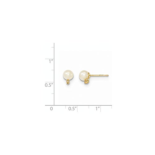 Solid 14k Gold Diamond 5-6mm Round White FW Cultured Pearl Studs