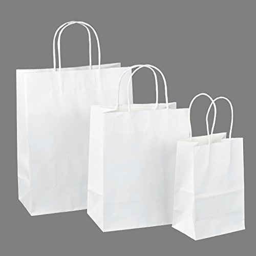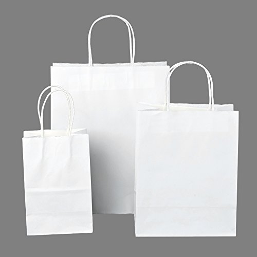 - Multipurpose Paper Bags: Size: 5x3x8&8x4x10&10x5x13 Inches 50pc Each Size,pack of 150pcs. Halulu craft paper bags should be your first choice. These plain white paper bags can be used for a variety of purposes. Use them to store clothes or shoes, or to organize your wardrobe, or even as shopping and gift bags.