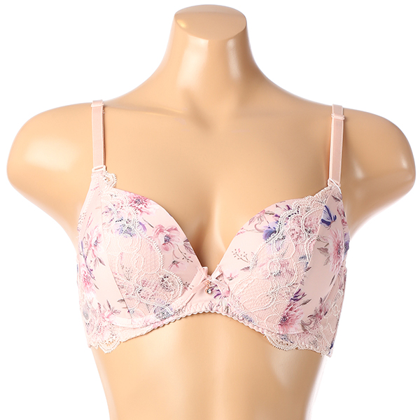 핑크컬러와 꽃프린트가 있는 여성 몰드브래지어입니다