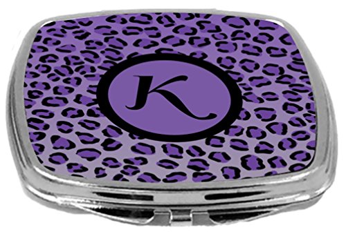 Rikki Knight Compact Mirror, Letter k Initial Purple Leopard Print