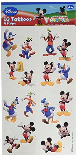-. Feature : Feature Mickey Mouse and friends having some fun / Easily removed with baby oil or rubbing alcohol / Perfect as party favor or P.R.Ize. / Package includes 4 sheets, with 4 tattoos per sheet, each measuring 2" x 2"
