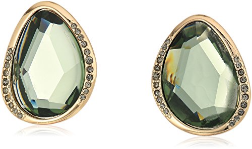 Kenneth Cole New York Scattered Pave Gold Tone with Large Green Stone Clip-On Earrings