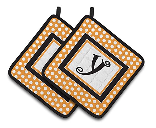 Caroline's Treasures Monogram Initial Y Orange Polkadots Pair of Pot Holders CJ1033-YPTHD, 7.5HX7.5W, Multicolor