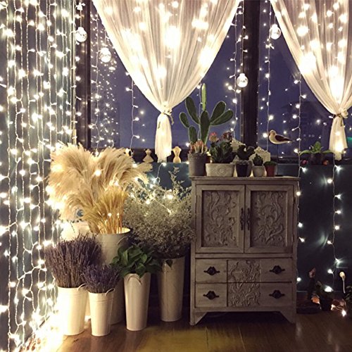 AGPtek 3Mx3M 300 LED Outdoor Indoor Christmas Xmas Party Wedding Celebration LED String Fairy Light Curtain Light Home Garden Decoration 110V White