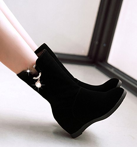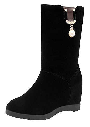Binding : Apparel Product Description This pair of shoes is for women, girls, brides and young ladies. You will look sexy and elegant when wearing them. The heels measure 2.9 inches. You will look slimmer and slender in their wedge heels. This pair of shoes features solid upper and ankle high. You will look sexy in their round toe design. The decoration of pearls will make you shining among the crowd. Its convenient for you to wear in their pull on closure. The sole is made of good rubber. You will feel comfortable in their soft bottom. They are of high quality and durable. Come on and take them away! 0