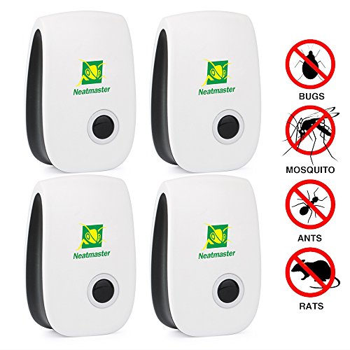 -. Title : Neatmaster Ultrasonic Pest Repeller - Electronic Pest Control Plug In-Pest Repellent for Insects -Mice ,Roaches ,Bugs , fleas , Mosquitoes and Spiders - Set of 4