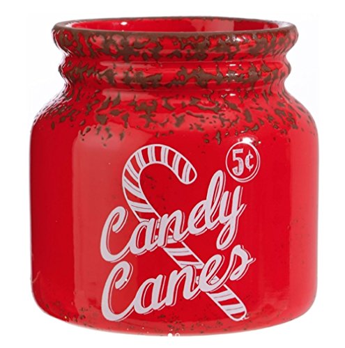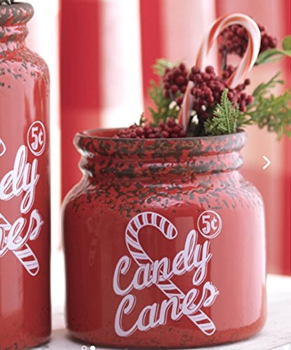 Vintage Style Christmas Canister with Peppermint Red and White Striped Candy Canes 5.5 inches