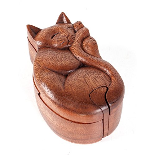 Wood Cat puzzle box gift for Valentines day (Cat Sleeping)
