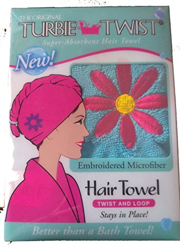 The Orginal Turbie Twist Microfiber Hair Towel Embroidered flower Blue