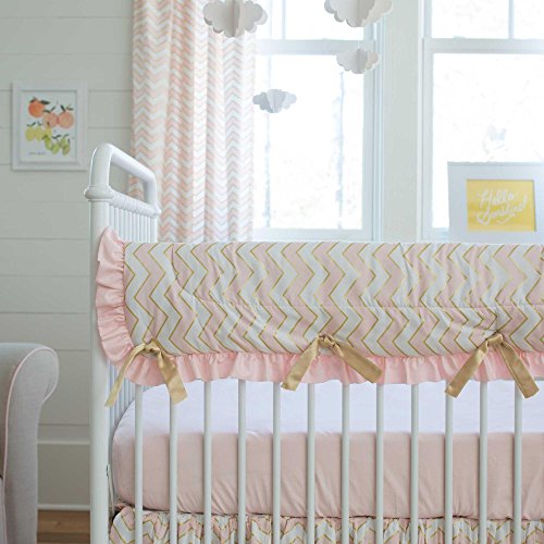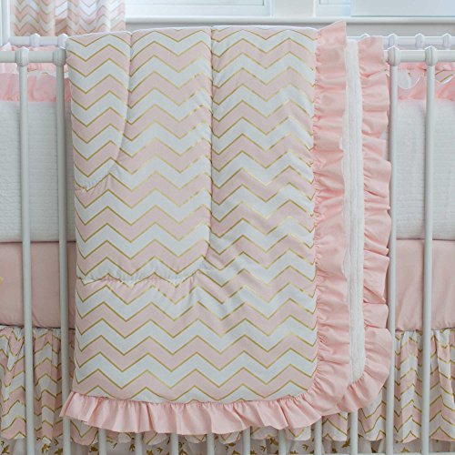 -. Title : Carousel Designs Pale Pink and Gold Chevron 2-Piece Crib Bedding Set