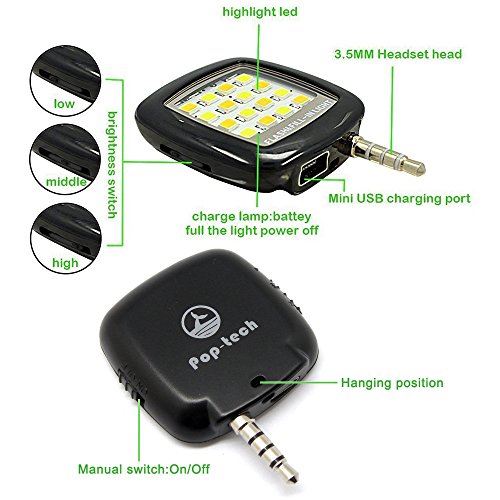 -. Title : Pop-Tech Mini Spotlight Smartphone Selfie LED Flash and Fill-Light For Apple iPhone 6 5 4 and iPad Mini 2 3 4 Air 2, LED light Speedlite for iPad and Android Devices