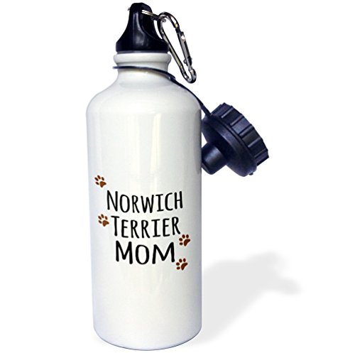 3dRose wb_154164_1 "Norwich Terrier Dog Mom-Doggie by breed-muddy brown paw prints-doggy lover pet owner mama love" Sports Water Bottle, 21 oz, White