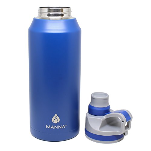 Manna Jumbo Outdoor Hydration Bottle | 32oz - 946ml | Stainless steel water bottle | Keeps Cold for 24 Hrs, Hot for 12 Hrs | Double Wall Vacuum Insulated | Flip lid & Wide mouth opening - Blueberry