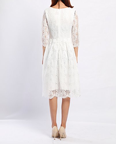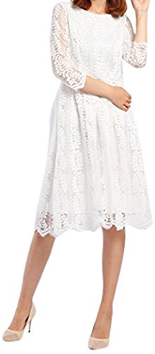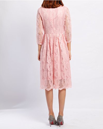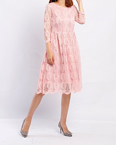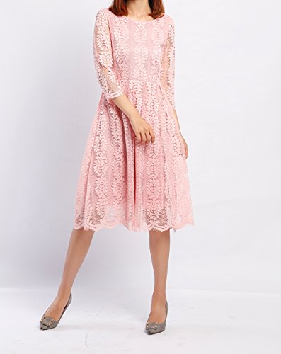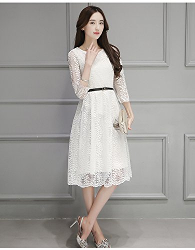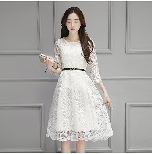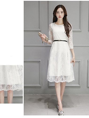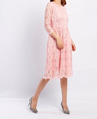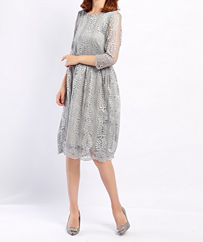-. Title : 「Rintos」(リントス)藤柄 レースワンピース 七分袖 ドレス リボン ひざ丈 ミモレ丈 夏 ベルト付き
