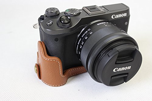 SundayZaZa Unten Opening Version Schutzmassnahmen Echtes Leder Half Camera Case Tasche fur Canon EOS M6 mit Handschlaufe