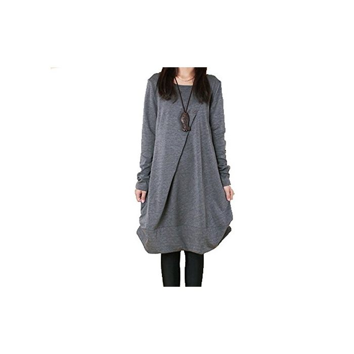 원본상품명: 【ノブランド】ワンピス タック入 ゆったり コクンシルエット ベシック ラウンドネック ギャザ 無地 レディス (XL, 灰色)