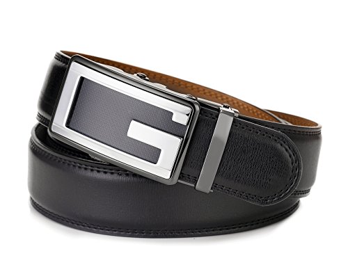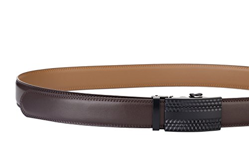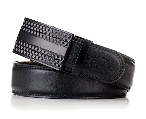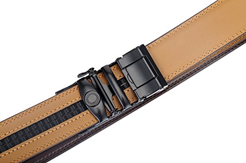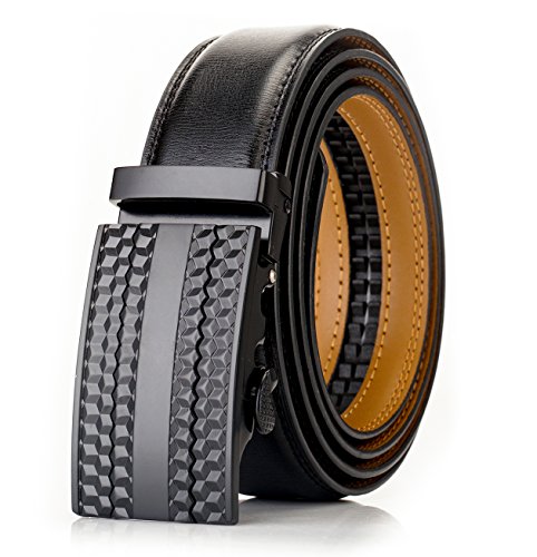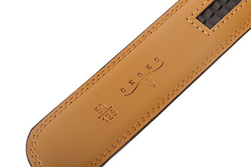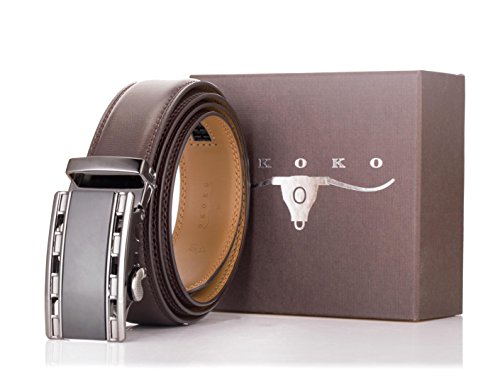 -. Feature : NO MORE HOLES - OKOKO Ratchet Belts provide 38 unique adjustments for a superb comfortable fit. Easy removable buckle allows you to cut the belt to your ideal size to give a primmer and custom tailored appearance! / EASY USE - Just slide the belt into the buckle and pull the belt through, the buckle simply auto locks the belt, to release the belt, gently push the lever on the side of the buckle and lock will snap. Simple, smooth and sleek! / MAXIMUM DURABILITY - belt strap is 3.5cm wide,which is presenting the perfect look of a fine, genuine leather quality designer belt for men, complemented with a highly fashion stylish and interchangeable buckle that is elegantly designed with class. Scratch resistant durable buckles made to last. / GIFT BOX - Make a big impression! Fashion men belt is enclosed in a lovely, attractive gift box. / ORDER WITH GRACE - 100% satisfaction guaranteed, 60 days free exchange and returns plus 180 days warranty.