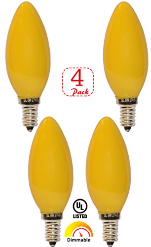 SleekLighting 6 Watt E12 LED Filament Candelabra Yellow Light Bulb, dimmable (60W Incandescent Replacement) Chandelier Torpedo Tip, Frosted Yellow Glass Cover E12 Base 4pack