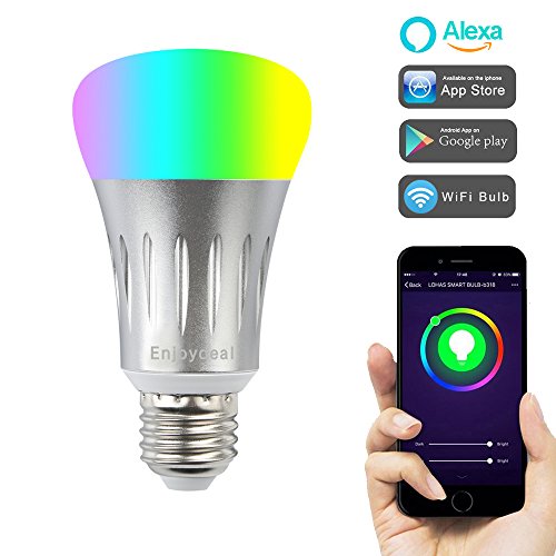 7W Smart E27 WiFi Bulb, Remote Control LED Light RGB Multi Color 6000K Dimmable Bulbs Compatible With Alexa For IOS/Android APP iPhone/iPad by Enjoydeal