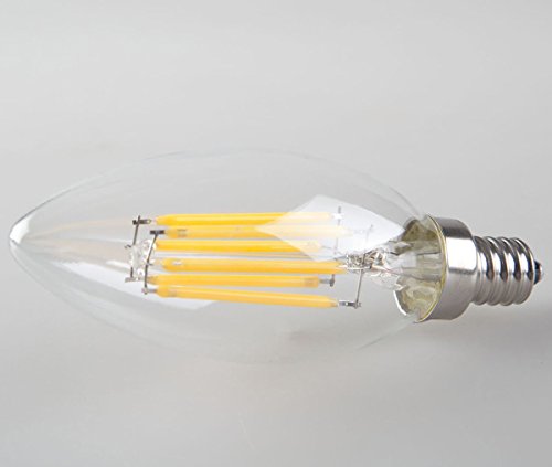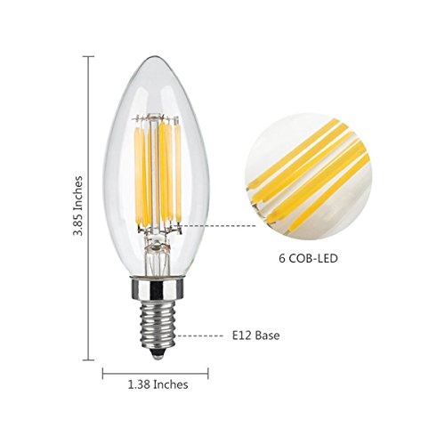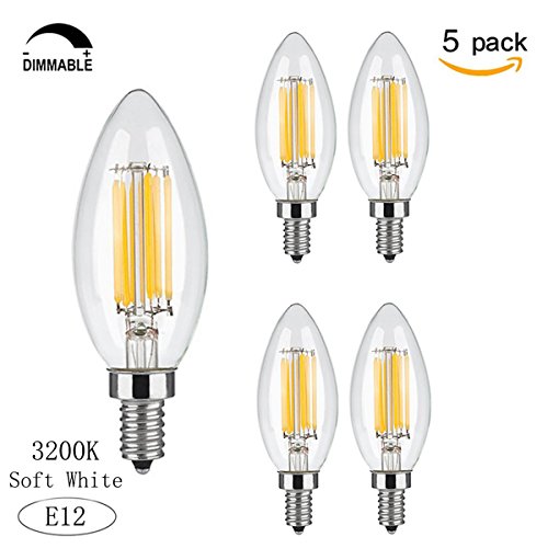 Wonninek 6W Dimmable LED Filament Candle Light, 3200K 600LM Chandelier LED Bulb, E12 Candelabra Base Lamp, C35 Torpedo Shape Bullet Top, Clear Glass Cover, 60W Incandescent Replacement -5 Pack