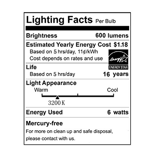 - The Best Energy Saving LED Light - 6 watts replaces the standard 60-watt incandescent light bulb, Save over 90% on Electricity Bill of Lighting.
