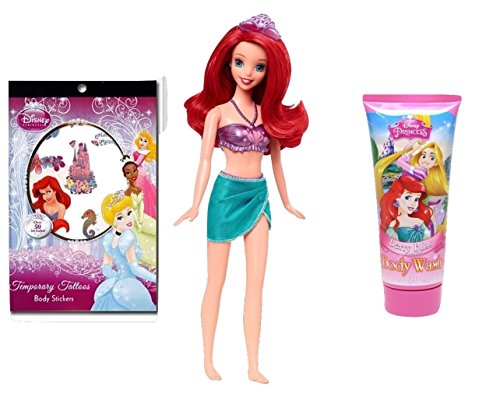 Disney Princess Ariel Bath Time Fun Pack Berry Bliss Body Wash, Ariel Bath Doll, and Temporary Tattoos