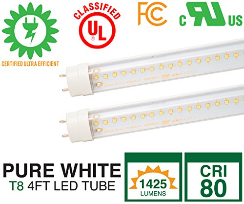 LED Tube Light Bulb, 4ft, 15W, T8, T10,T12, Clear Lens, PURE White (5000K) - pack of 2 LED tube light bulbs