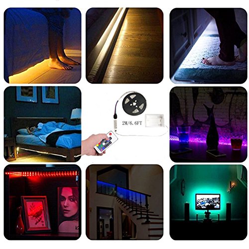 aijiaer Battery Powered Led Strip Lights, 5050 2M/6.6FT, Waterproof Flexible Color Changing RGB LED Light Strip, 60 LEDs 5V Battery-powered with RF Controller