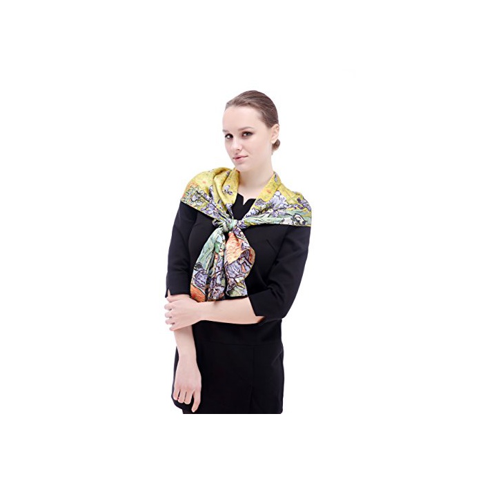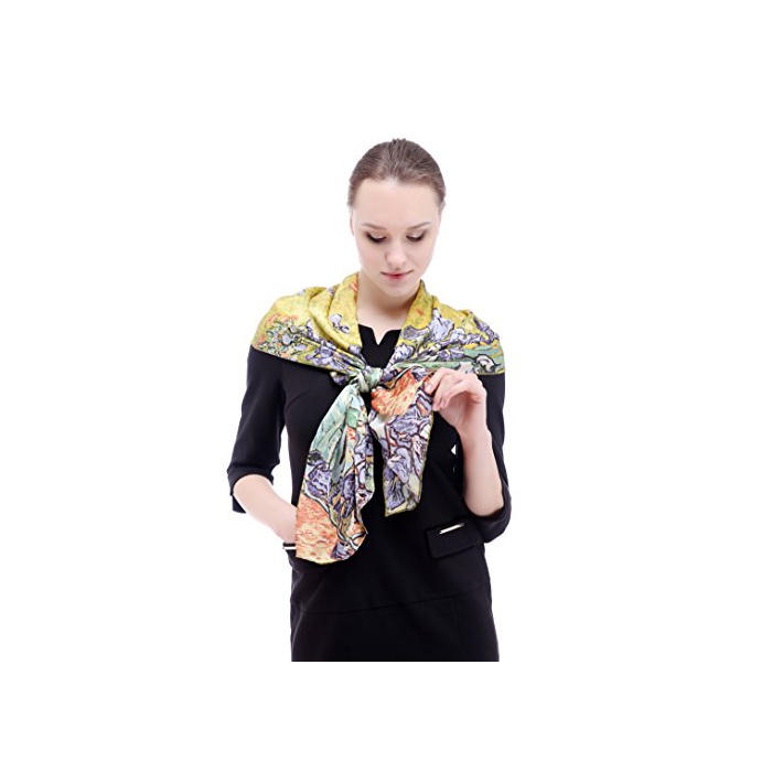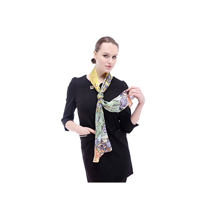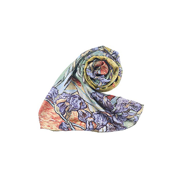 (A-자바리(구에)《―나》)Aqueena 100%실크 레디의 스카프 아이리스 고호 유화 롱 스카프 수작업