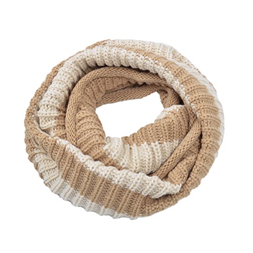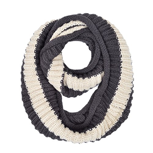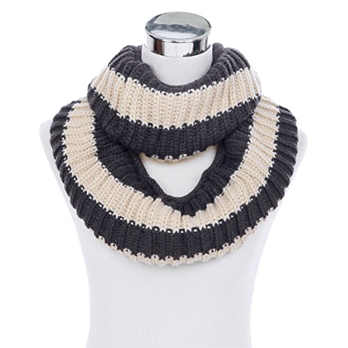 Product Description This soft knitted infinity loop scarf is a great addition to your collection of fashion accessories. Trendy yet classic 2-tone striped knit. High quality versatile, thick warm. Great for cold weather with no bulky feel. Brings you simple effortless style along with warmth comfort. This scarf makes an excellent gift for any occasion. TrendsBlue® is a registered trademark. 0