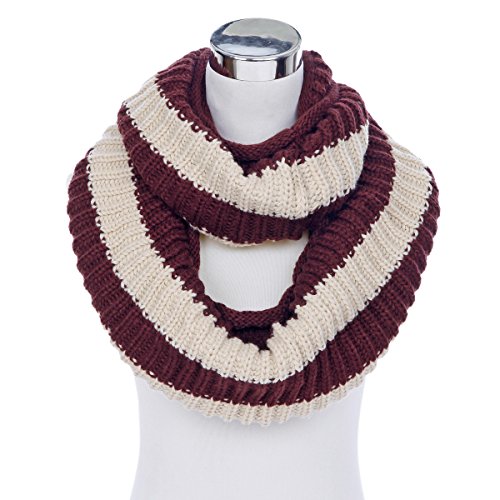 Premium Winter Knit Striped Infinity Loop Circle Scarf - Different Colors Available