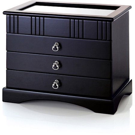 -. Title : Glass Top Jewelry box, Armoires, 3 drawers, Black finish