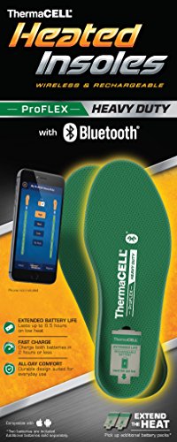 Studio : Schawbel Technologies (US) Publisher : Schawbel Technologies (US) Binding : Sports Product Description The ThermaCELL PFHD-XL Pro flex heavy duty heated insoles are the next step in revolutionary feet warming technology. Utilizing Bluetooth operation, temperature control is easier than ever using the ThermaCELL App on any IOS or Android device. Simply download the App on your smart phone and select between stand-by (no heat), low (90 degrees), medium (100 degrees) and high (111 degrees) to keep your feet warm without having exposed them to the elements. The ThermaCELL heavy duty heated insoles feature high capacity batteries that are 30% more powerful than the standard Pro flex batteries, and last up to 6.5 hours of warmth per charge. Using fast charge technology these batteries will charge up to 80 percent in just 80 minutes, meaning less time out of your shoe and more time keeping you warm. Having been tested to 1 million steps, these durable heated inserts are optimized for cushioning and stability to allow you to stay on your feet all day long. From the frozen peaks of the world's highest mountains to boston's high-rise construction sites during the dead of winter, ThermaCELL heated products have become essential equipment for extreme users. When people push the limits of the cold temperatures they can Endure, they count on heated insoles and heat packs to bring on the heat. 0