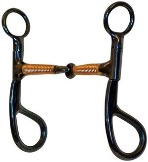 Product DescriptionBlack satin training bit, copper wire wrapped snaffle mouth, 5-1/2" cheeks for young intermediate horse. (Moderate effect)0