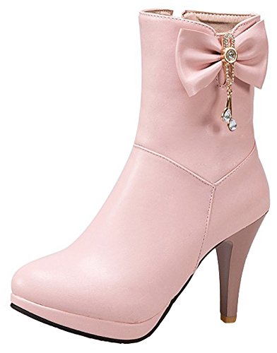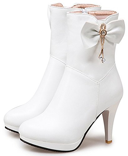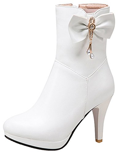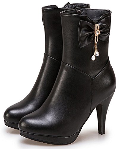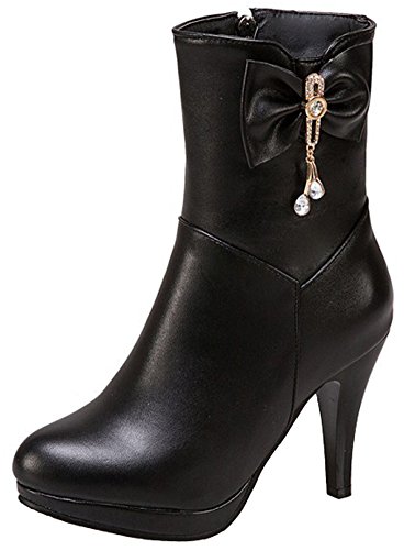 (Mofri)/Women's/Boots/DIRECT FROM USA/Mofri Women's Elegant Bow Rhinestone Stiletto High Heel Ankle Booties Platform Pointed Toe Side...