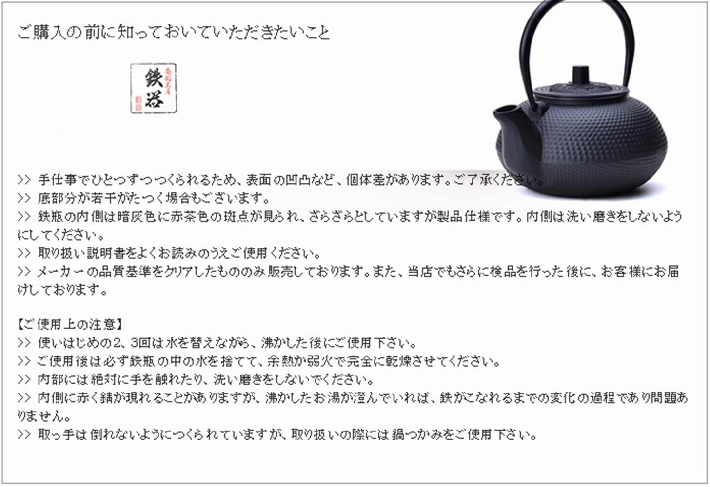 Later, in the late Edo period, Meiji, Taisho and Showa, four periods, over 100 years, the iron bottle widely spread throughout Japan.