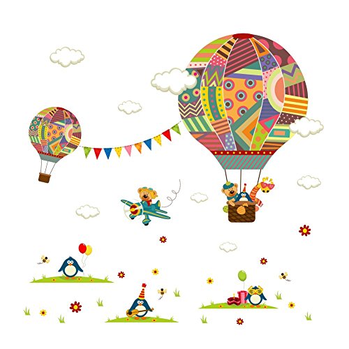Colorful Hot Air Balloon Animal Nursery Room Wall Sticker Bear Giraffe Kids Rooms Classroom Cartoon Wall Decal Poster