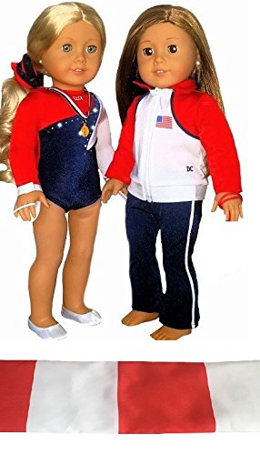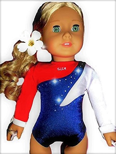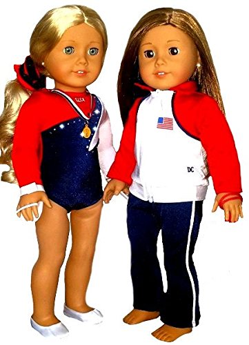 Doll Clothes for American Girl Dolls Christmas: She will be an AG Olympic Team WINNER with this adorable 7 Piece Leotard Gym Set accented with sparkling bling rhinestones for your little gymnast and that upcoming dance party. Includes complete set: bodysuit with sparkling rhinestones with MATCHING Warm Up Set, Hair Scrunchie, Olympic Gold Medal, Hand Grips and Slippers! Add to her wardrobe closet with more outfits and accessories by Doll Connections. Doll Connection Clothes are all handmade, and custom designed to give your doll the unique look that you want. You won't find these clothes in any store. These are truly unique designs exclusive to Doll Connections. Made to fit dolls such as American Girl, Gotz, Our Generation, My Life and Madame Alexander, Heritage 18 inch dolls. This outfit includes ALL 7 PIECES!. QUALITY you can count on by DOLL CONNECTIONS . All rights reserved. Fits 18 inch dolls Like American Girl, Madame Alexander, Shop online for All Your Doll Needs on sale, Girl of Today Just Like Me, Girl of the Year MaryEllen, Isabelle, Mckenna, Kit, Molly, Julie, Madame Alexander, Our Generation, Girl of Today, Just like me Samantha, Kirsten , Molly, Felicity, Elizabeth, Rebecca, Julie, Ivy, Ruthie, Nellie, Saige, Caroline, Katie, Grace and retired American Girl Dolls and custom ag dolls. Our Doll Clothes fit these Size Measurements Height: 18 inches Chest: 11.25 inches Waist: 11 inches Hip: 12.25 inches Arm Length: 6.5 inches Inside Leg: 7 inches Makes the perfect birthday party gift along with holiday, Christmas, red Valentines Day, Mothers Day, 4th of July, Halloween, Thanksgiving and 2016 Christmas stocking stuffers ideas and the best price gifts under the tree. Free shipping available through agamazon Prime where we have the best cost to you.Feature
