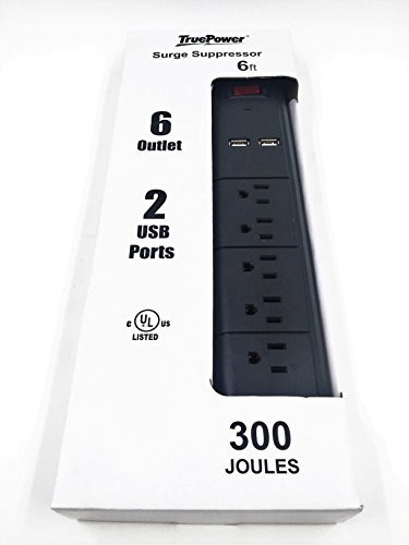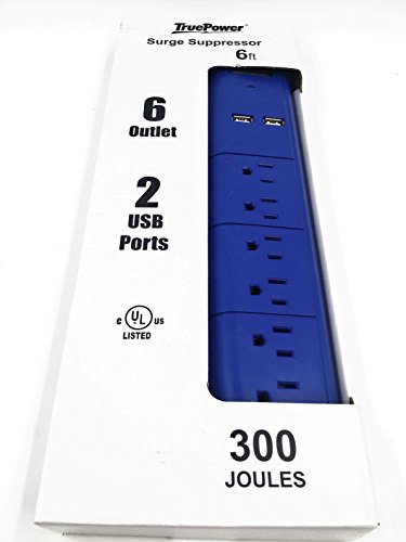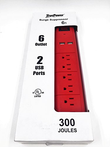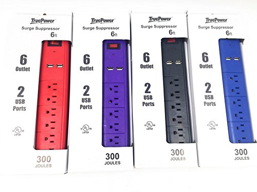 TruePower 6 Outlet Surge Protector w/Dual USB Ports & 6' Cord -Purple