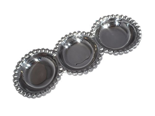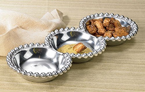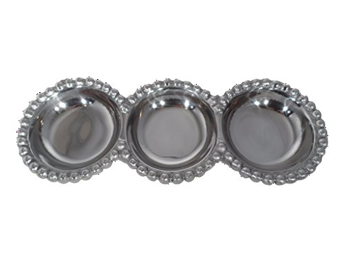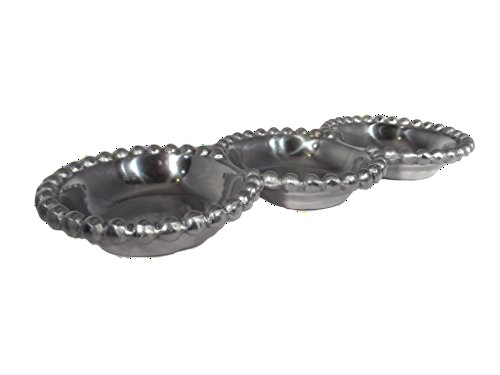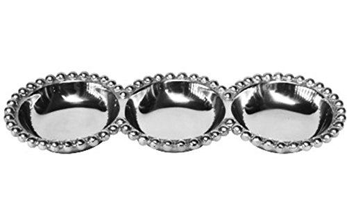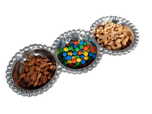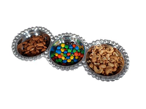 Studio : India Handicrafts Publisher : India Handicrafts Product Description Ideal for formal entertaining or everyday use, this beautiful beaded aluminum divided platter, makes serving easy and classy at the same time. Great for use as a condiment or dip tray, or for serving appetizers and snacks to your guests. Hand crafted by skilled Artisans, this silver divided tray is made from food safe aluminum with beaded edges for additional elegance and class. The sectional tray measures 14.5 inches, and is easy to clean and care for. 0