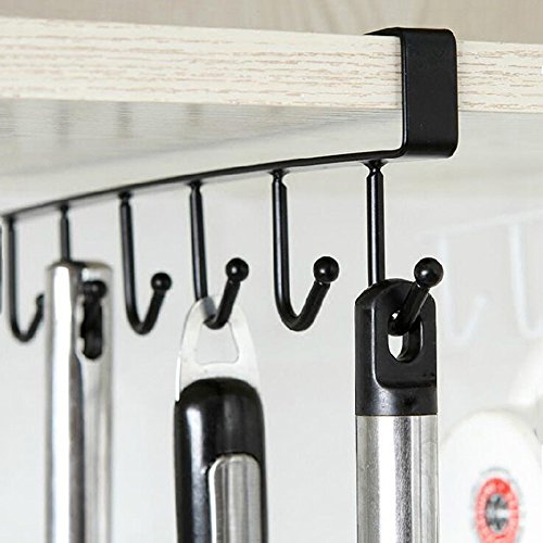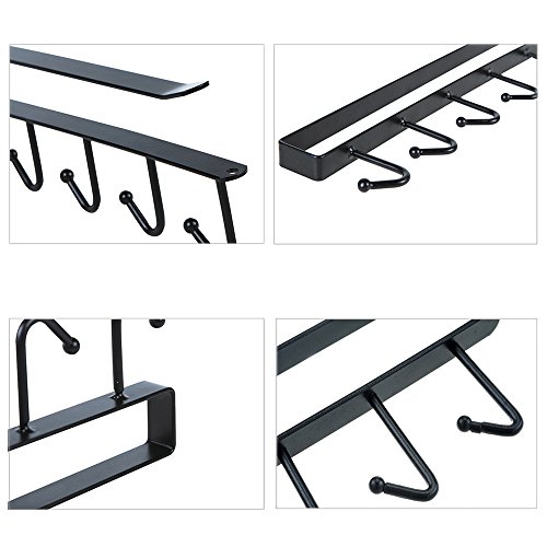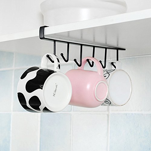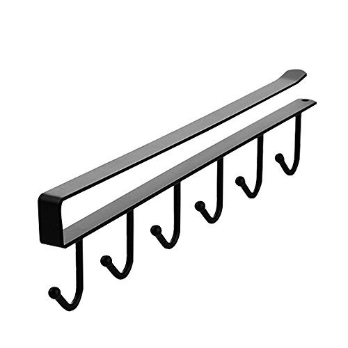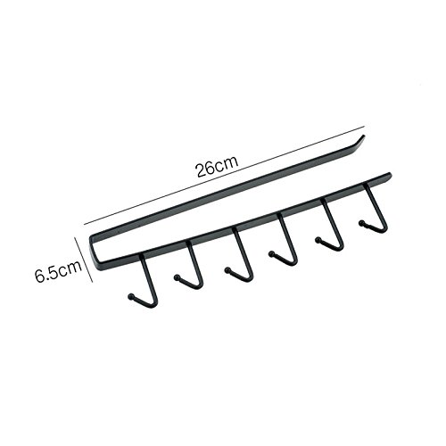 Mural Art Free Perforated Metal 6 Hooks Under Cabinet Utensil Organizer Mug Hook Holder Kitchen Storage Hanger Drying Rack Shelf Closet Organizer (Black)