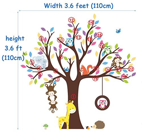 ElecMotive Cartoon Forest Animal Monkey Owls Fox Rabbits Hedgehog Tree Swing Nursery Wall Stickers Wall Murals DIY Posters Vinyl Removable Art Wall...