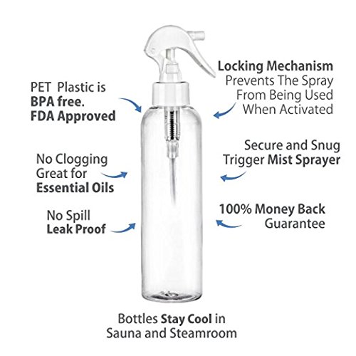 - 100% FOOD GRADE SAFE BPA free no leaking design prevents wasting any of your valuable toiletries. Large neck making it easy to fill the bottle. Durable long lasting that saves money and hassle. MoYo natural labs plastic spray bottle 8oz, reusable, refillable, washable plastic spray plastic bottle is a durable spray oil bottle.