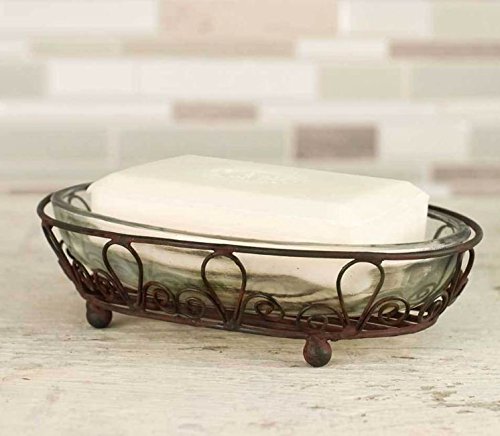 -. Brand : Red Co. -. Color : White -. EAN : 0689483242581 -. Feature : Vintage inspired dish soap with charming cottage accent / A slightly rusted looped wire create an oval shaped frame supported by four round feet / Removable dish made of thick clear glass / Decorative and useful at the same time / Dimensions: 6"L x 4"W x 1.5"H -. Label : Red Co. -. Manufacturer : Red Co. -. Model : 54HPZ -. MPN : 54HPZ -. NumberOfItems : 1 -. PackageQuantity : 1 -. PartNumber : 54HPZ -. ProductGroup : Home -. ProductTypeName : HOME_BED_AND_BATH -. Publisher : Red Co. -. Studio : Red Co. -. Title : Vintage Looped Wire Clear Glass Soap Dish with Round Feet -. UPC : 689483242581