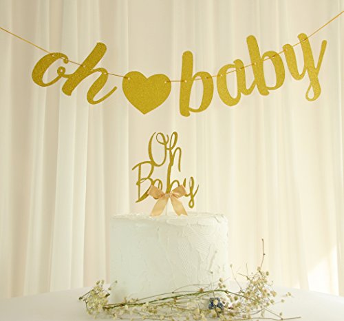 Oh Baby Banner Oh Baby Cake Topper Set of 2, for Baby Shower or Gender Reveal Party, Gold Glitter Highest Quality, Handmade and Sold by Soccerene