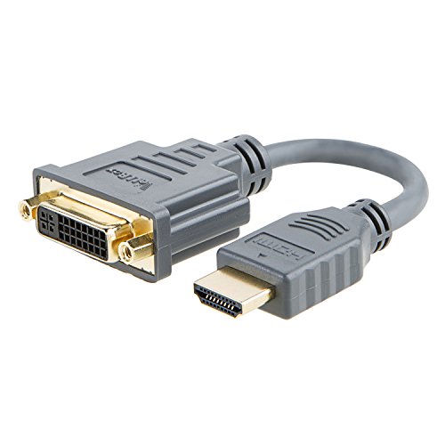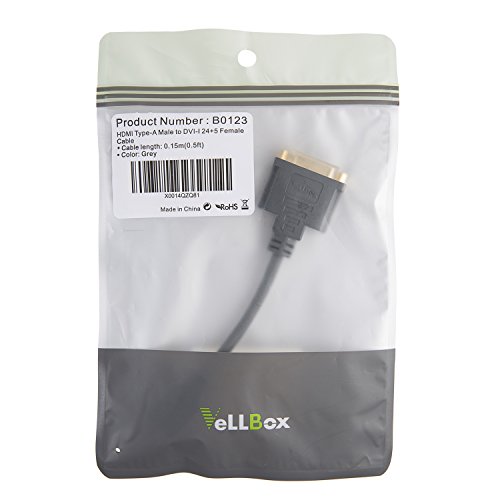 VeLLBox HDMI A-Type Male to DVI 24+1 Male Cable, High Speed, Bi-directional HDMI to DVI Cable, Gold Plated, Grey, 10cm